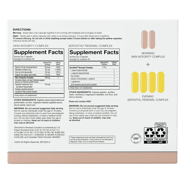 ②SeroVital Renewal Complex:支持下丘脑功能,帮助恢复年轻状态,提高能量水平,增强肌肉和脂肪分布的优化。