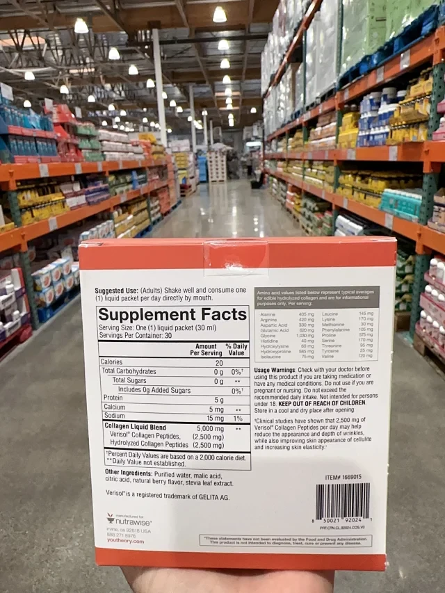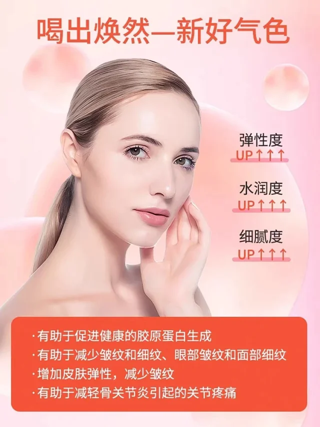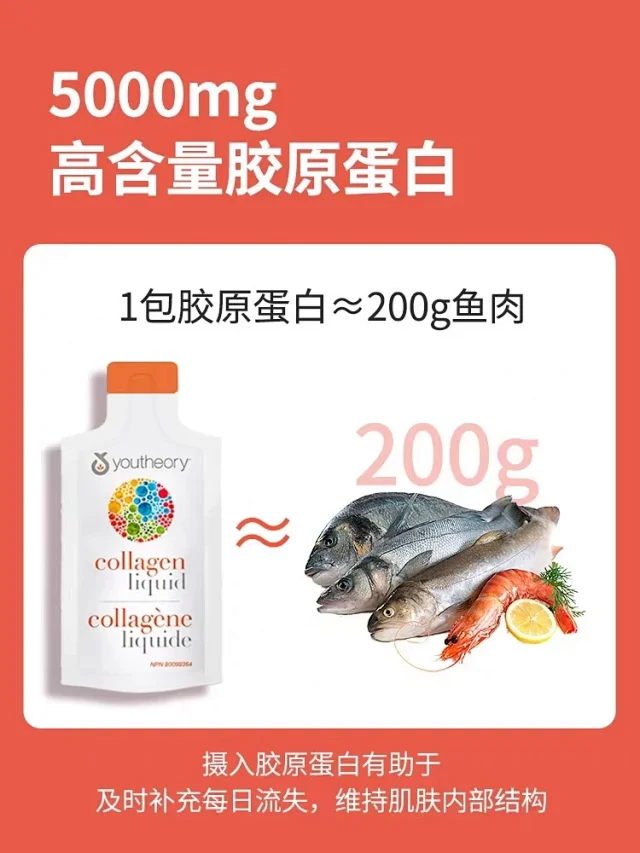 每袋含5000毫克可溶和高度吸收的胶原蛋白肽,对皮肤、头发和指甲都有好处!无糖款,开袋即喝,很方便!